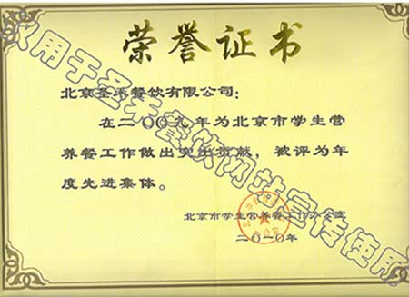 2009年北京市学生营养餐工作年度先进单位
