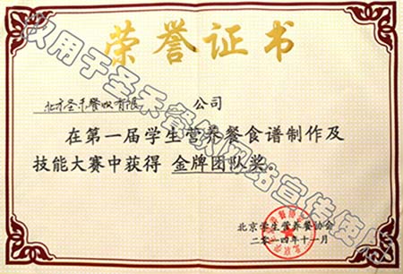 第一届学生营养餐食谱制作及技能大赛金牌团队奖
